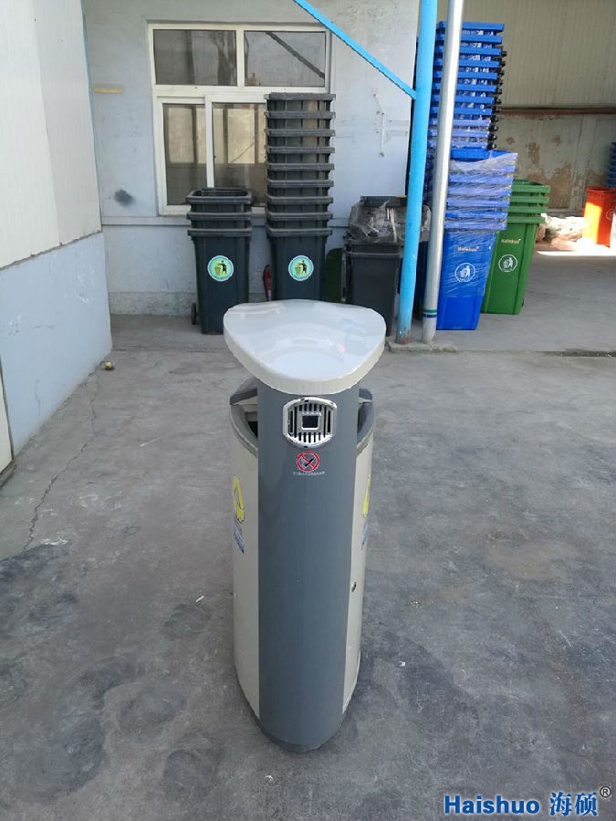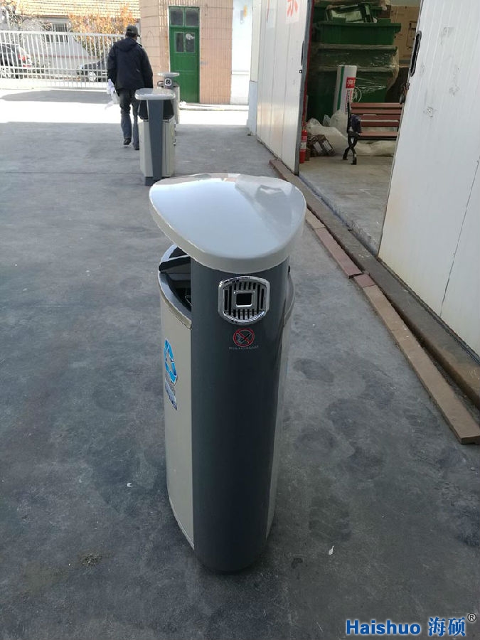 青島海碩戶外果皮箱HS-F-02,與普通垃圾桶比較而言,增加了桶身的強度,使之經(jīng)久耐用,并且美觀好看