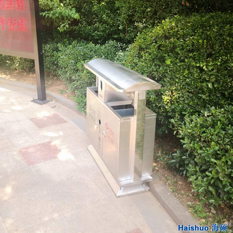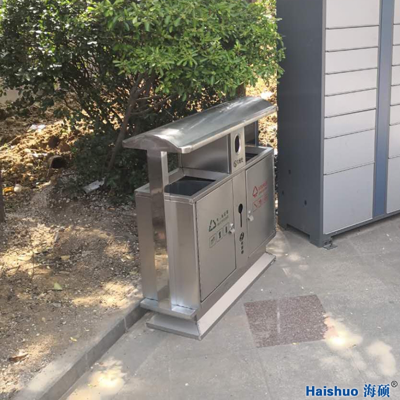 海碩環(huán)保分類果皮箱亮相城陽區(qū)華胥美邦物業(yè),一款采用不銹鋼制作的雙桶分類垃圾桶,防腐、防銹,整體整潔明亮,其功能分為可回收垃圾收集和不可回收垃圾收集以及滅煙處,其優(yōu)點(diǎn)標(biāo)識明顯,簡潔美觀,一款不生銹的果皮箱,并對垃圾分類宣傳起到一定的推廣作用,用于街道社區(qū)、大型商場、景區(qū)公園、地鐵站臺等。