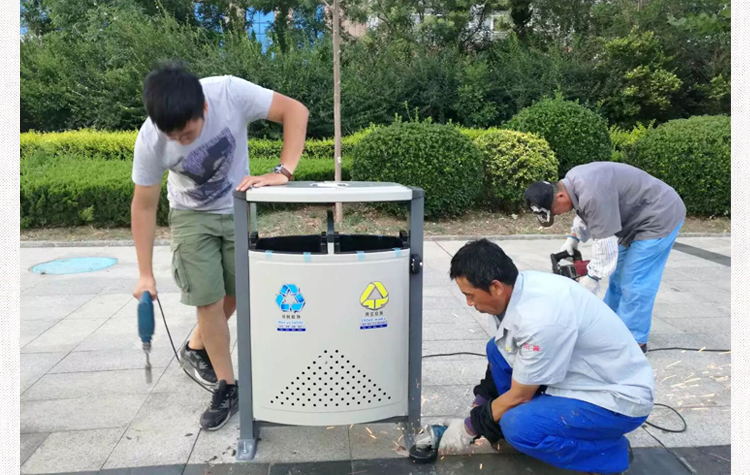 鋼木分類果皮箱,采用電解熱鍍鋅板裁剪、壓制、折彎后再焊接而成型,箱體鑲嵌塑木條,內(nèi)膽是鍍鋅板/玻璃鋼,美觀,具有防腐、防盜、防生銹、易清潔等特點(diǎn)。其中,蓋頂采用的是整體液壓成型工藝,弧形設(shè)計(jì),提高產(chǎn)品的時(shí)尚性與使用安全性;在煙頭塞口處使用加厚不銹鋼,不傷手,永不生銹,使用壽命長,結(jié)構(gòu)上,內(nèi)筒與投放口高度結(jié)合,使得垃圾更容易入桶,而清潔工人更方便清理等優(yōu)點(diǎn)。