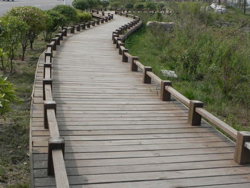 鄰水木棧道為人們提供了行走、休息、觀景和交流的多功能場(chǎng)所。由于木板材料具有一定的彈性和粗樸的質(zhì)感,因此行走其上比一般石鋪磚砌的棧道更為舒適。多用于要求較高的居住環(huán)境中。