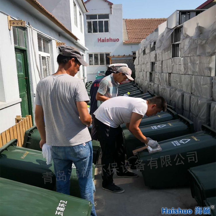 下圖為青島海碩環(huán)保為某環(huán)衛(wèi)提供戶外垃圾桶