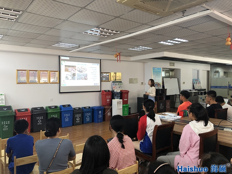 上午8:30,帶隊的仇老師和幾位同學(xué)們及熱心家長就已經(jīng)陸續(xù)到達(dá)海碩環(huán)保公司總部。當(dāng)30余位同學(xué)到齊后,海碩環(huán)保于老師開始為大家分享垃圾分類知識。