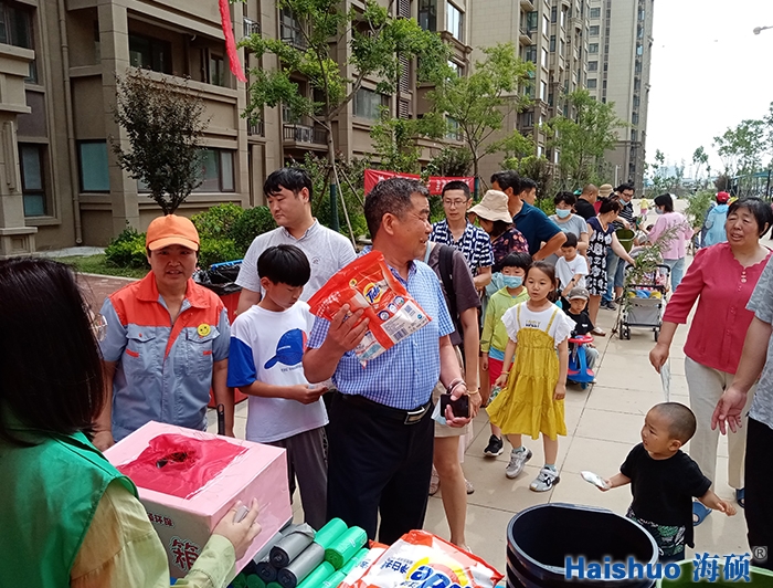 問答環(huán)節(jié),海碩環(huán)保工作人員現(xiàn)場提出的每個問題都與實際生活密切相關,將垃圾分類知識融入其中。抽獎環(huán)節(jié)的設計不僅吸引了大量居民前來參與,而且在進行垃圾分類宣傳的同時,還給大家?guī)砹苏嬲媲星械膶嵒,大大提升了活動的實際宣傳效果。